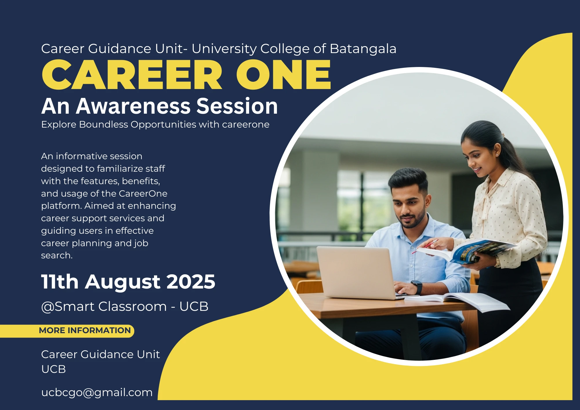 An informative session designed to familiarize staff with the features, benefits, and usage of the CareerOne platform. Aimed at enhancing career support services and guiding users in effective career planning and job search.