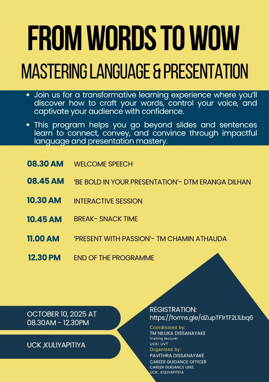 With the collaboration of Career guidance unit this program is conducted to help you enhance your presentation and delivery skills — empowering you to communicate with confidence and impact. Learn from inspiring leaders and get ready to shine anywhere you go!