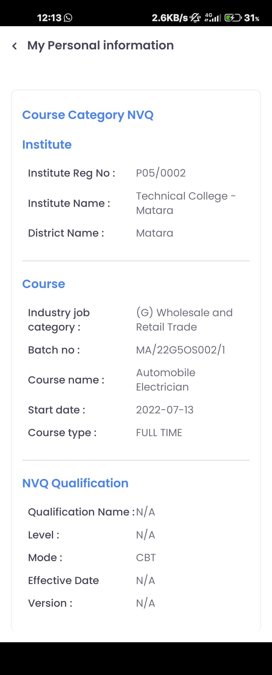 NVQ Certificate Details