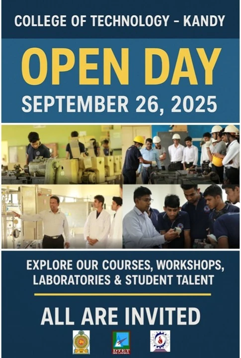 Open Day 2025 – College of Technology, Kandy Date: 26th September 2025 Time: From 9.00 AM onwards Venue: College of T...